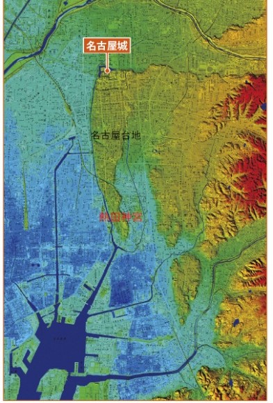 一方、名古屋は乾いた台地で、熱田の海に近く、東西の交通も開け、大軍を動かすのにも都合がよい場所でした。