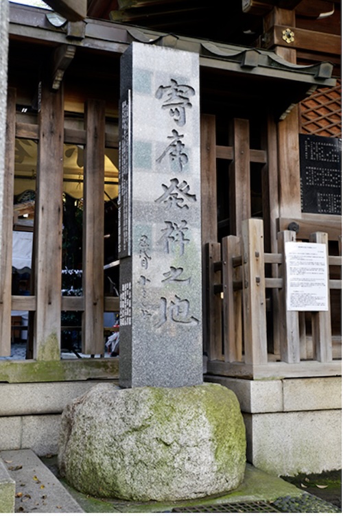 平成10年(1998年)寄席発祥二百年を記念して、都内四つの亭席・落語協会・落語芸術協会を始め落語関係者の協力により境内に記念碑が建てられ、同年4月10日、落語関係者二百名参列の下、除幕式が執り行われました。